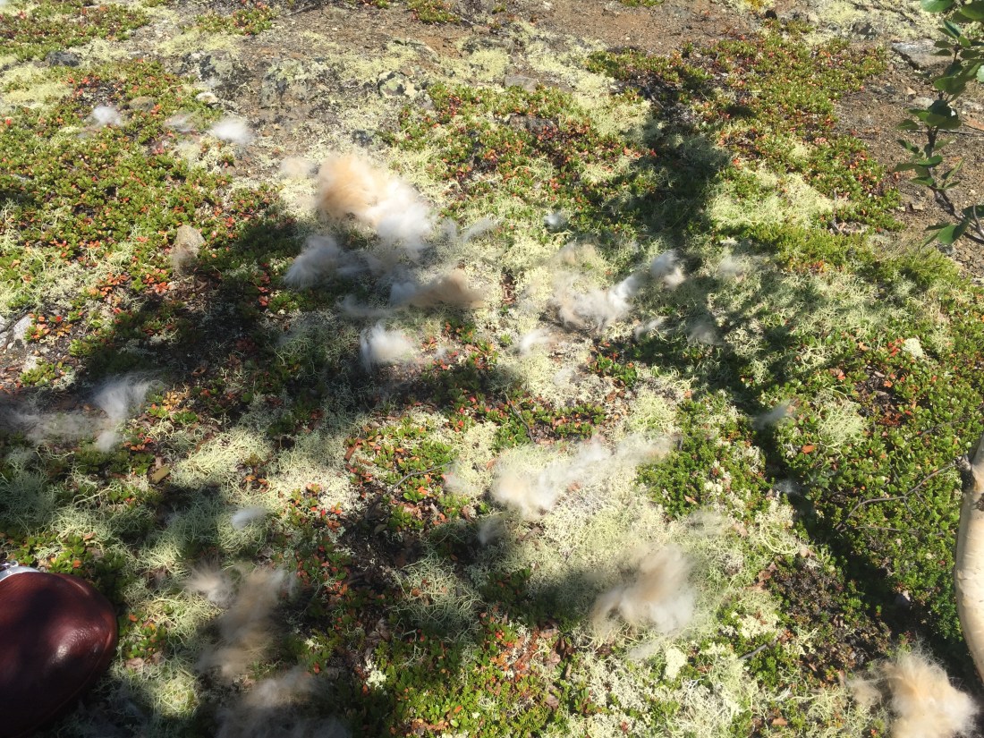 Greta hat gerade Fellwechsel. Das ist kein Wollgras, sondern das Ergebnis des Kämmens