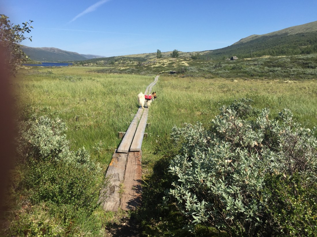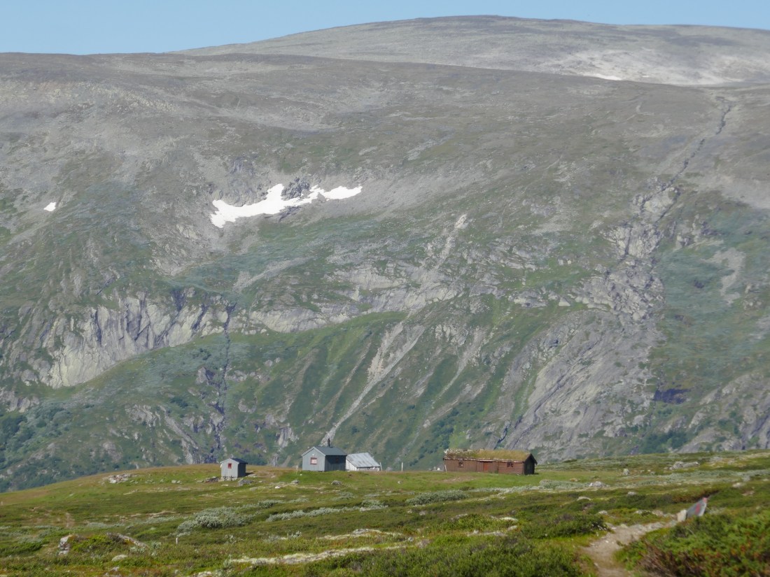 Von Hjerkinn nach ? – im Moment bin ich in Kongsvoll, aber ich werde noch weitergehen. Heute morgen um 8:45 Uhr nach wunderbaren Frühstück gestartet. 14,5 km nach Kongsvoll, um 13:15 Uhr da,500m hoch, 540m runter, Weghöhe 890 bis 1.267m
