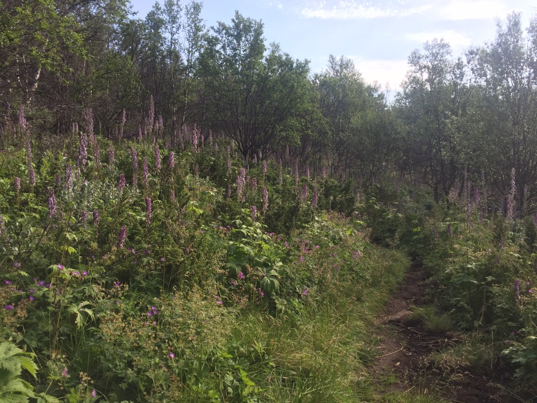 Die 3 km sind/waren so schlimm, dass ich richtig sauer war über die Wegführung. Auf der E6 zu gehen wäre nicht gefährlicher gewesen. Dann geht es nur noch hoch, ich schlage mein Zelt auf einer Höhe von 1.200m zwischen zwei Privathütten auf, die zur Zeit unbewohnt sind. Es ist 22 Uhr.