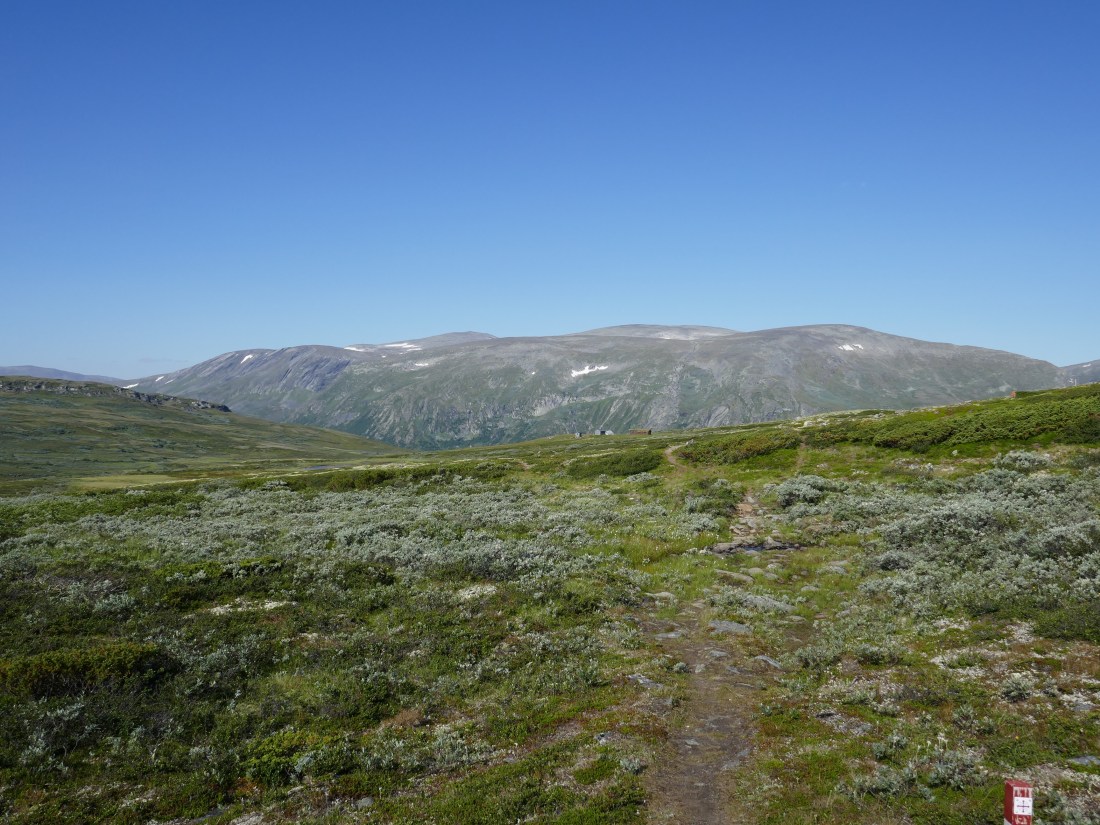In Kongsvoll breche ich um 15:30 Uhr auf und merke nach 3 km, dass ich meinen Pilgerführer dort liegengelassen habe. Rufe an, und bitte den Hotelchef ihn an Heike auszuhändigen, die abends ankommt. Welch Glück Pilger vor und nach mir zu haben die ich kenne.